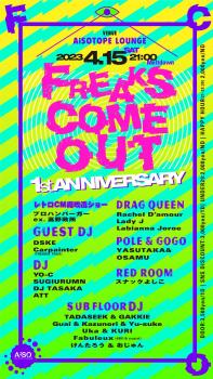 セクシュアリティや国籍、年代もバックグラウンドも一切問われないダンスフロアを出現させて来たこのパーティ。YO-C、SUGIURUMN、DJ TASAKA、ATTが旗手となり新宿二丁目を舞台に華々しくスタートした「FREAKS COME OUT」が早くも1周年を迎える。
