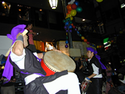 太鼓を打ち鳴らしながら踊る勇壮な男性達が印象的。(中にすごくイケル男の子がいたんです!)最後に彼らは、周りの観客をステージの中に招きいれ、沖縄伝統音楽にのって踊るように催促。